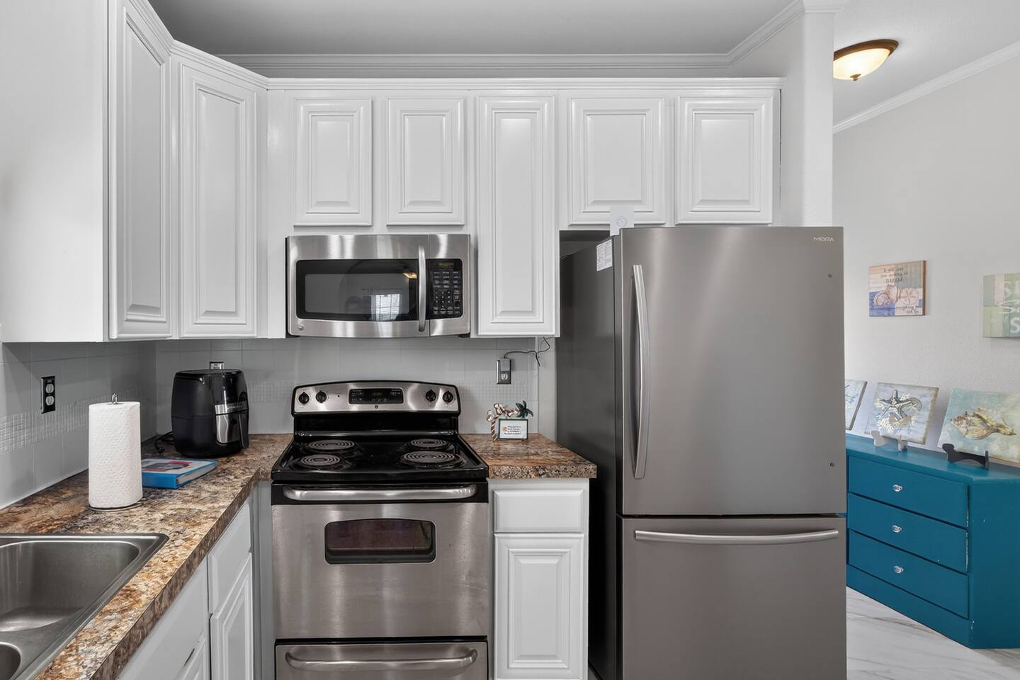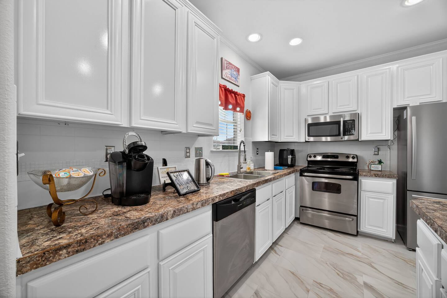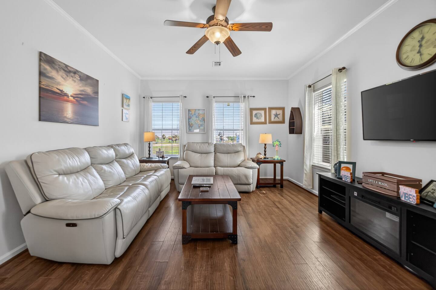 Welcome to Caribbean Palm Retreat, a bright 3BR beach home in Crystal Beach. Just a short walk to the beach, enjoy a cozy living room with fireplace, fully equipped kitchen, and spa-like bathrooms with smart toilets (bidet, heated seat, auto flush). Relax on the deck, grill, or unwind after a day in the sun. Fast Starlink WiFi, free parking, self check-in, and family-friendly amenities included.