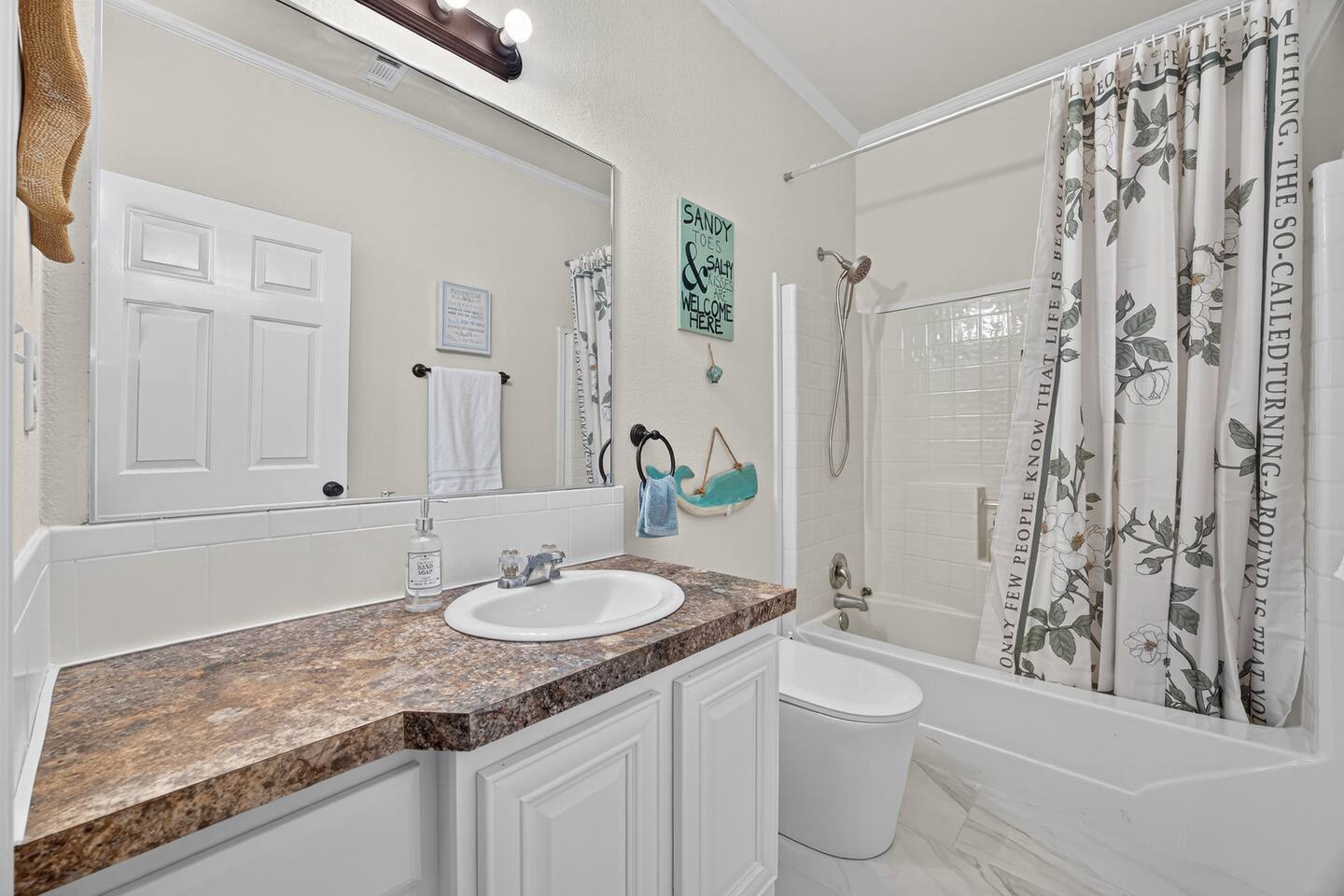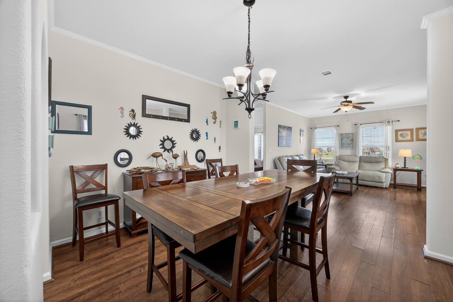Coastal Comfort Meets Smart Living Welcome to your relaxing Crystal Beach escape. This thoughtfully designed 3-bedroom, 2-bath home blends modern comfort with a light coastal style—perfect for families and small groups. 🌊 Prime Location ~10-minute walk to Crystal Beach Drive directly onto the beach (allowed) Located in quiet Emerald Beach 2 community Enjoy the perfect mix of convenience and peaceful coastal vibes. 🛋️ Living & Relaxation Bright open living room with comfortable seating Electric fireplace for cozy evenings Smart TV with streaming apps (Amazon Prime & Youtube) Board games and family-friendly setup 🍳 Kitchen & Dining Fully equipped kitchen with cookware and essentials Keurig coffee maker + electric kettle Dining table + outdoor dining area Blender, toaster, and full appliance set 🛏️ Sleeping Arrangements 3 comfortable bedrooms designed for restful sleep Clean linens, extra pillows, and blankets Ideal for up to 6 guests 🚿 Bathrooms (Standout Feature) Modern bathrooms with smart toilets Bidet Heated seat Automatic flush 👉 Adds a unique, hotel-like comfort guests love 🌴 Outdoor Features Spacious deck with seating BBQ grill (42,000 BTU, large cooking area) Outdoor shower (great after beach) Sun loungers and outdoor furniture 🚗 Parking & Access Parking for up to 6 vehicles Under-house + driveway parking Easy access via stairs to main entrance Smart lock for self check-in 👨👩👧 Family & Pet Friendly Kids books, toys, and high chair Safe and open layout Great for family trips